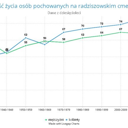 Wprowadzenie Pierwotnym celem analizy było scharakteryzowanie w czasie średniej długości życia kobiet i mężczyzn pochowanych na cmentarzu w Radziszowie. Dane zostały zaczerpnięte z serwisu Grobonet, a stan ich aktualizacji obejmuje dzień 1 marca 2023 r. Najdłużej żyjące osoby Zakres danych Średnia długość życia w kolejnych dekadach Ogólne tendencje Anomalie i możliwe przyczyny Kobiety w ostatnich …