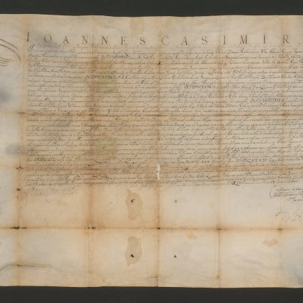 Transkrypcja łacińska IOANNES CASIMIRVS Nos Ioannes Casimirus Dei gratia Rex Poloniae, Magnus Dux Lithuaniae, Russiae, Prussiae, Masoviae, Samogitiae, Livoniae, nec non Suecorum, Gothorum, Vandalorumque Hereditarius Rex,ac etiam Rex in regnis et terris aliis titulis nostris adiunctis, omnibus et singulis praesentium notitiam habituris salutem et gratiam nostram. Ad perpetuam rei memoriam significamus tenore praesentium, quod inspectis …